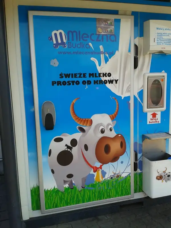 Mlekomat znajduje się tuż przy hali targowej „Tęcza” przy ul. Bajana (Wrocław).