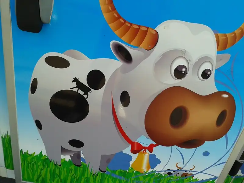 Ja natomiast spotkałam ten sam kleksik krowy na jednym z wrocławskich mlekomatów. Nieźle się tam wtopił, prawie niezauważalnie 🙂